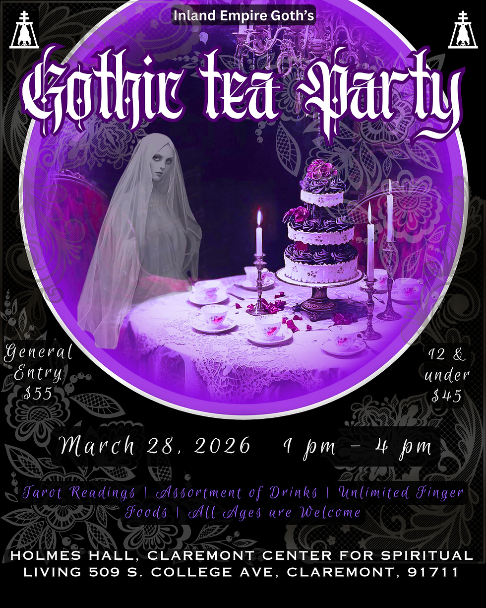 Join the Inland Empire Goth community for a spellbound gathering of tea, treats, and timeless gothic beauty.